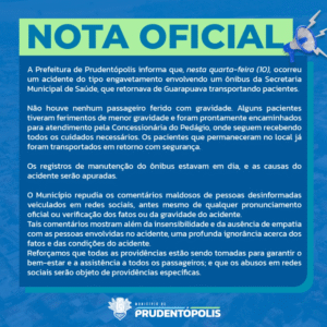 A Prefeitura de Prudentópolis se manifestou por meio de nota oficial, esclarecendo que o ônibus envolvido no acidente retornava de Guarapuava transportando pacientes.