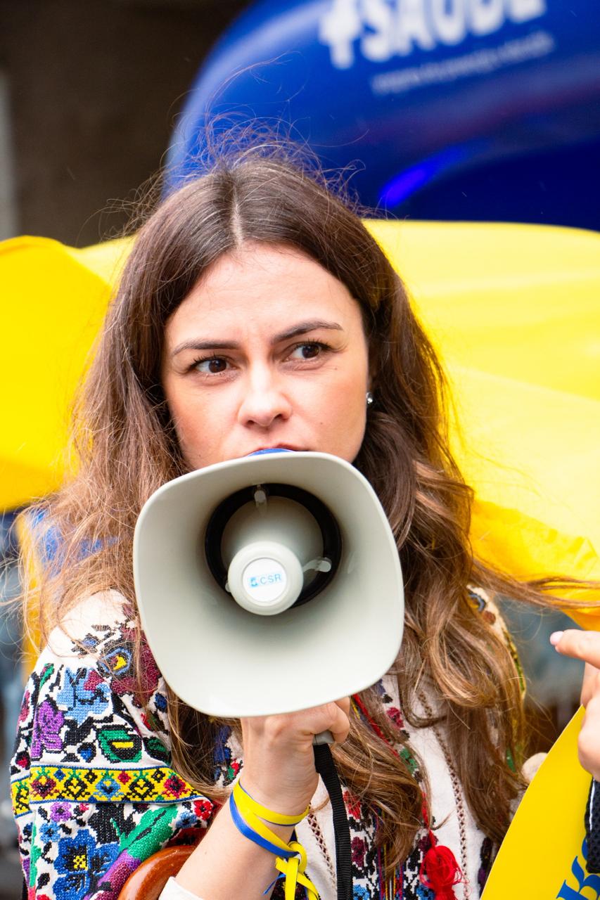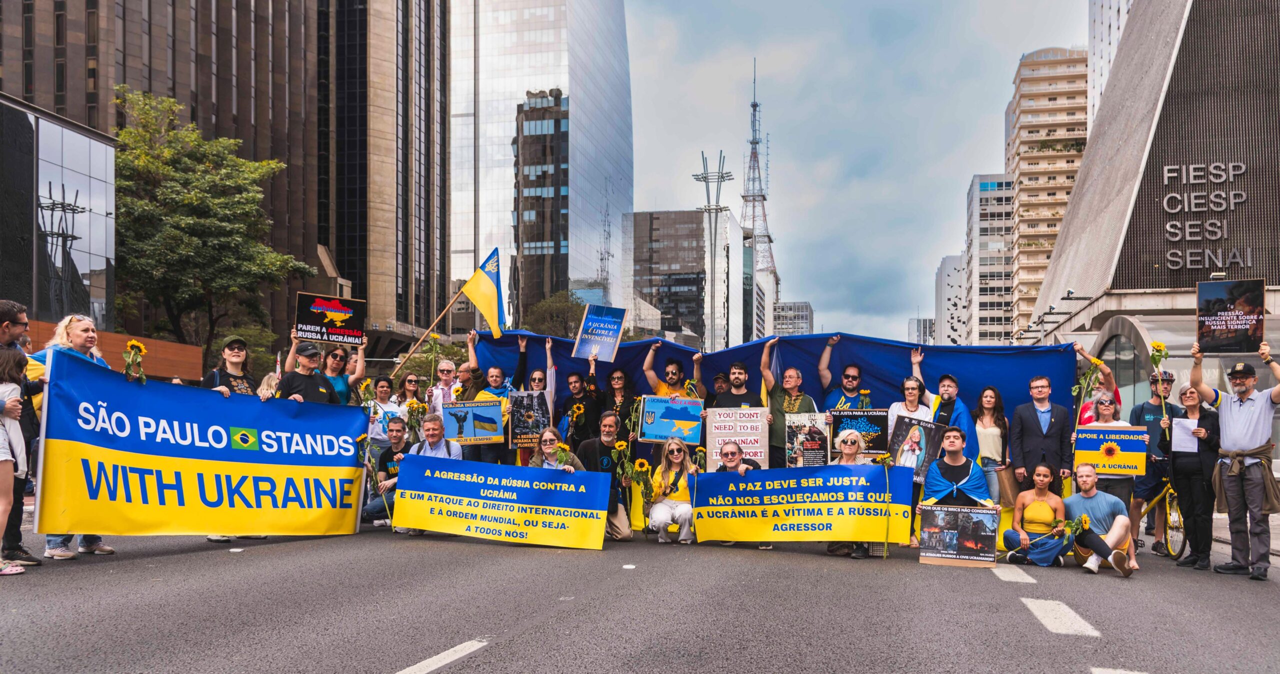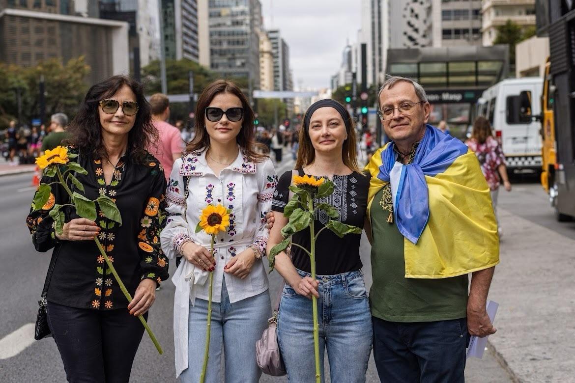 Além da vivência cultural, Katerina compartilhou seu engajamento em prol da Ucrânia. Em 2013, ela e outras ucranianas organizaram uma Maidan Brasileira na Avenida Paulista, em 2022 após a invasão voltou a organizar com sua mãe, Nadija Dokuchaeva, manifestações recorrentes em São Paulo para conscientizar a população brasileira sobre a guerra, exibindo fotos, cartazes e dados históricos, mostrando desde as invasões russas até o impacto sobre crianças e civis. O objetivo dessas ações é transmitir a verdade sobre a situação do país e reforçar que os ucranianos não estão sozinhos. Inicialmente, a participação da comunidade ucraniana era baixa, mas o apoio de brasileiros e de entidades como a Embaixada da Ucrânia no Brasil foi essencial. “É importante para nós ucranianos não nos sentirmos sozinhos e mostrar a verdade da situação”, afirmou. Ela acrescentou que os eventos são diferentes das manifestações comuns, incluindo cartazes com fatos históricos, fotos, dados sobre crianças sequestradas, número de pessoas mortas e datas importantes, permitindo que o público veja a realidade da guerra. “Temos visto um resultado muito positivo. O apoio dos brasileiros, de políticos como Eduardo Jorge, do Cônsul Honorário da Ucrânia Jorge Rybka e sua esposa, e da própria Embaixada da Ucrânia no Brasil é muito importante e nos fortalece”, completou.
